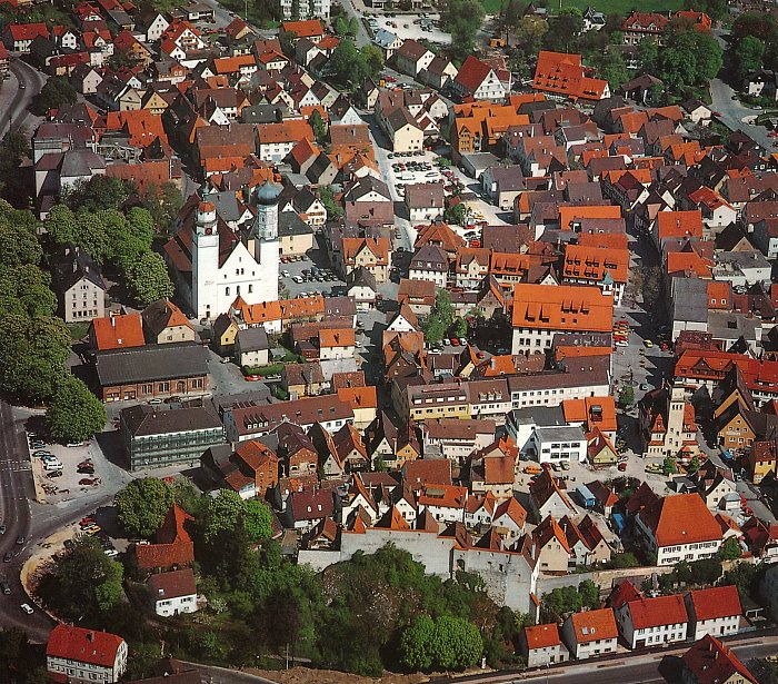 ![Luftaufnahme Altstadt Richtung Irpfel]()